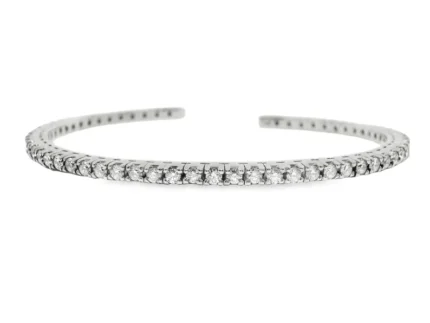 Platifine 950 Platinum 1.68ct Round Brilliant Lab Diamond prong bangle with EF color, VVS clarity and IGI Certified stones- timeless elegance for any occasion.
