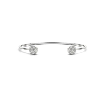 Platifine 950 Platinum open bangle with 0.33ct cushion-shaped Lab Diamond pave, excellent cut, IGI Certified, refined sparkle for every occasion.