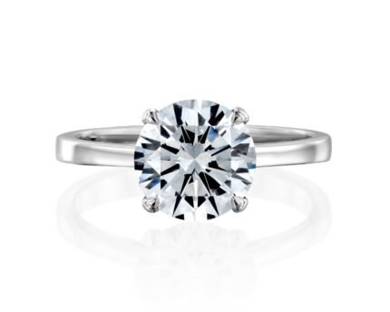 Platifine 950 Platinum solitaire ring with a 1.50 ct Premium Moissanite, Round Brilliant cut, D color VVS1 clarity, GRA Certified for exceptional brilliance.