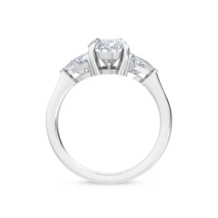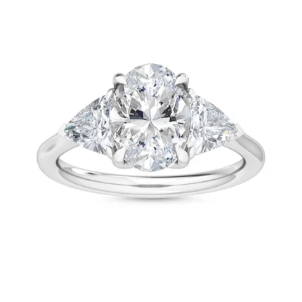Platifine 950 Platinum engagement ring featuring a 1.74ct Oval Natural Diamond with Trillion side stones, Excellent cut G-H SI, GIA Certified, 2.57ct