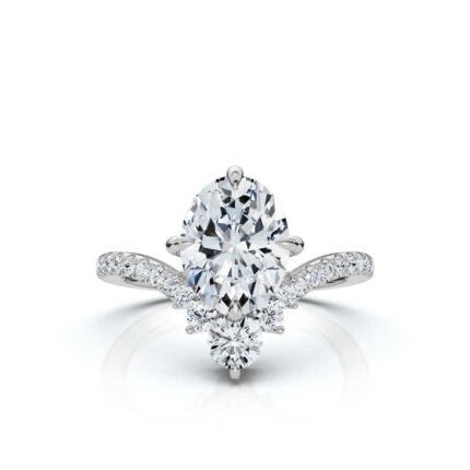 950 Platinum 2.57ct Pear & Round Cut Natural Diamond Side Stone Engagement Ring