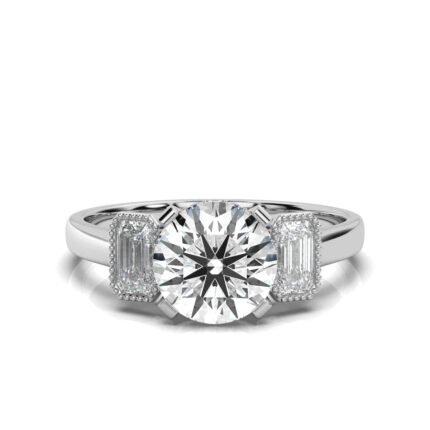 Platifine 950 Platinum 2.5ct Super Cut Round Natural Diamond ring, GIA Certified, with 0.52ct round & princess side diamonds for refined, enduring brilliance.