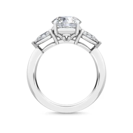 Platifine 950 Platinum 2.57ct engagement ring with Pear & Round Cut Natural Diamond side stones, 2.00ct round center, Excellent cut, GH SI, GIA Certified.