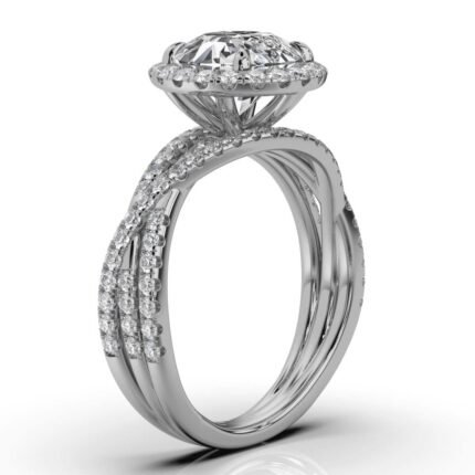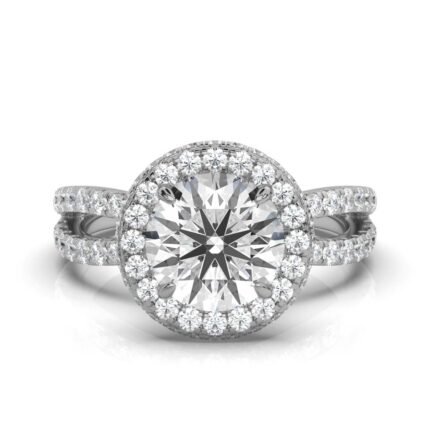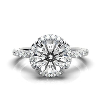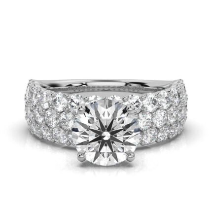 Platifine 950 Platinum engagement ring featuring a 2ct Round Super Cut Natural Diamond (GIA Certified) with pavé band of 44 natural diamonds (0.1ct)