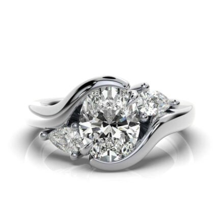 Platifine 950 Platinum engagement ring with a 2ct Oval Natural Diamond and 0.5ct pear side stones, Excellent cut, SI GH clarity, GIA Certified elegance.