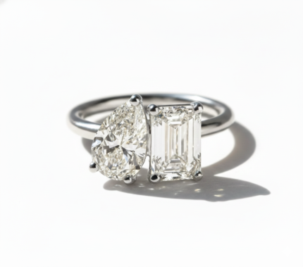 Pear and Emerald Cut 2.00 CT Natural Diamond Toi et Moi Engagement Ring in 950 Platinum with Two Stone Setting