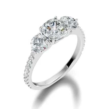 Three Stone Trilogy Natural Diamond Engagement Ring in 950 Platinum
