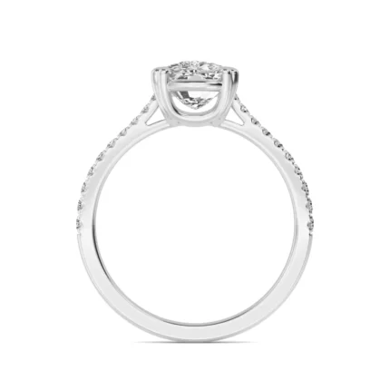 Platifine 950 Platinum Emerald Cut engagement ring with 9 baguette Natural Diamonds illusion halo, GH color SI clarity, GIA Certified for enduring elegance.