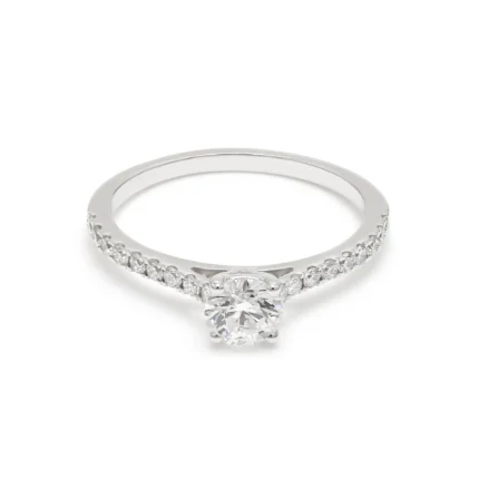 Platifine 950 Platinum 0.77 ct Round Natural Diamond solitaire engagement ring with pavé band, Excellent cut, G-H SI clarity, GIA Certified elegance.