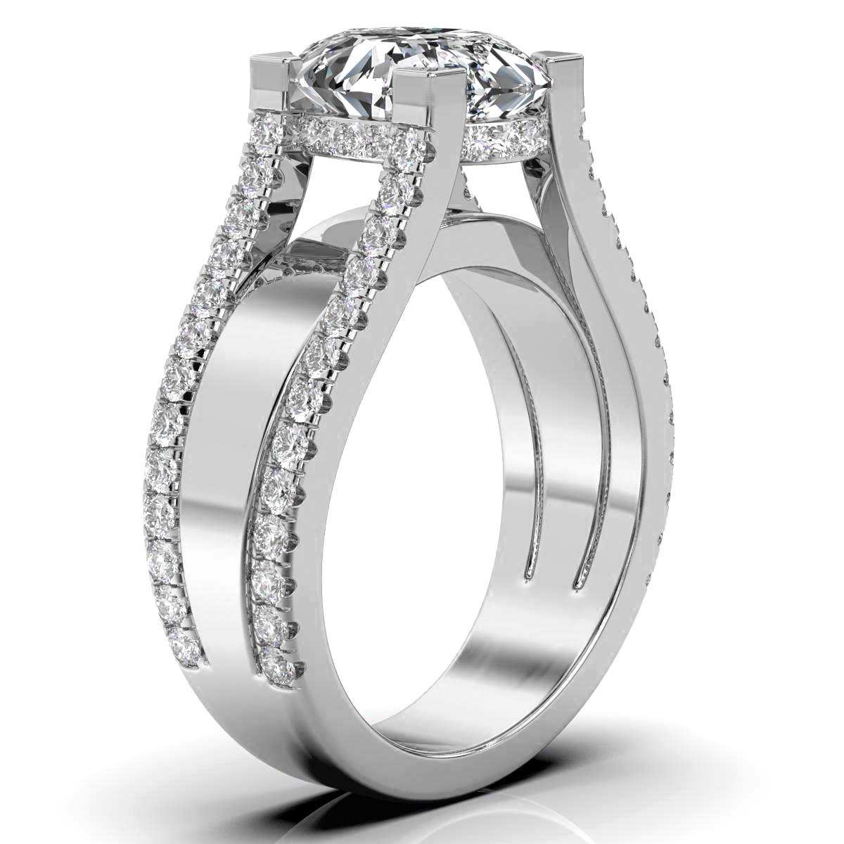 The band features stunning Premium Moissanite stones, totaling 1.00 carat in weight. Each stone is shaped in a classic Round Brilliant Cut with excellent precision, showcasing exceptional fire and brilliance. The moissanite stones are color graded D, clarity VVS1, and come with GRA certification, ensuring remarkable sparkle and authenticity.