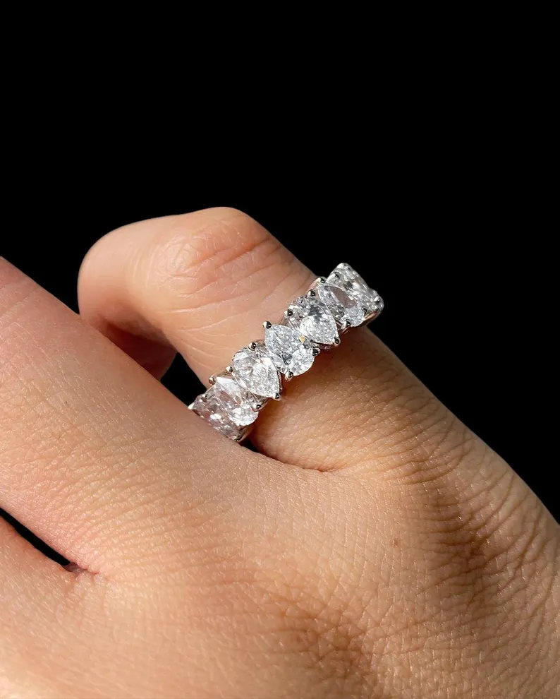1.00 CT Pear Cut Moissanite Diamond Eternity Band in 950 Platinum
