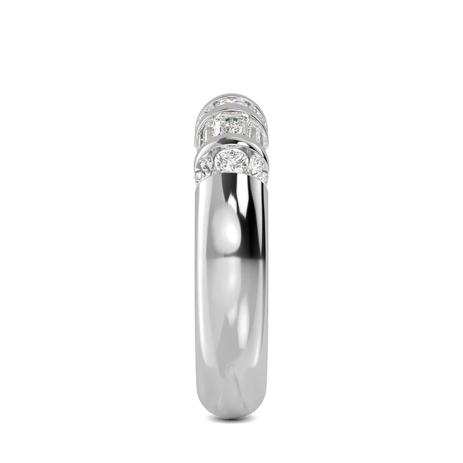 The band features stones exquisitely arranged in a channel setting, combining round brilliant and baguette shapes for a harmonious design. These lab diamonds have a total carat weight of 0.86ct, polished to an excellent cut to maximize their brilliance and fire, ensuring a captivating sparkle on your finger.