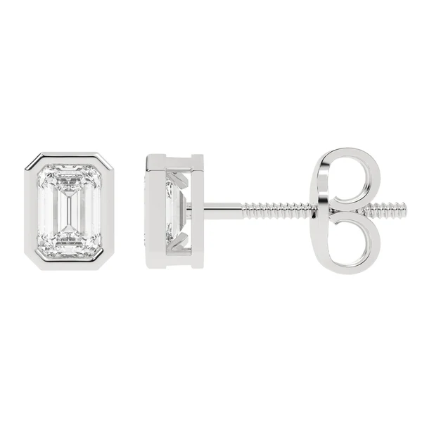 Platifine 950 Platinum 1.1ct Emerald Cut Premium Moissanite bezel stud earrings, D color, VVS1, Excellent cut, GRA Certified — timeless sparkle