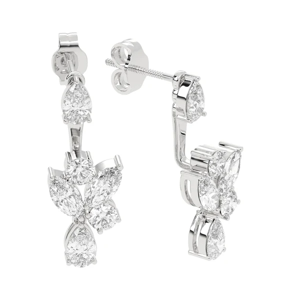 Platifine 950 Platinum 1.41ct Multi Shape Lab Diamond ear climbers, Excellent cut, EF color, VVS clarity, IGI Certified for refined everyday elegance.