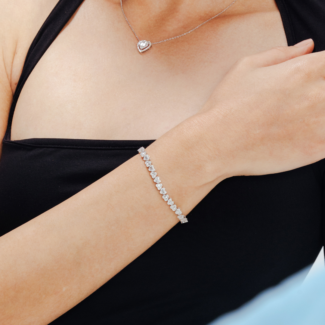 Whether marking a milestone or elevating daily elegance, this Platinum bracelet by Platifine is a meaningful addition to any collection. Its heart-inspired design symbolizes love and sophistication, making it an ideal gift or a treasured personal keepsake. Experience the harmony of craftsmanship, luxury, and timeless beauty with this distinguished 950 Platinum diamond heart bracelet.