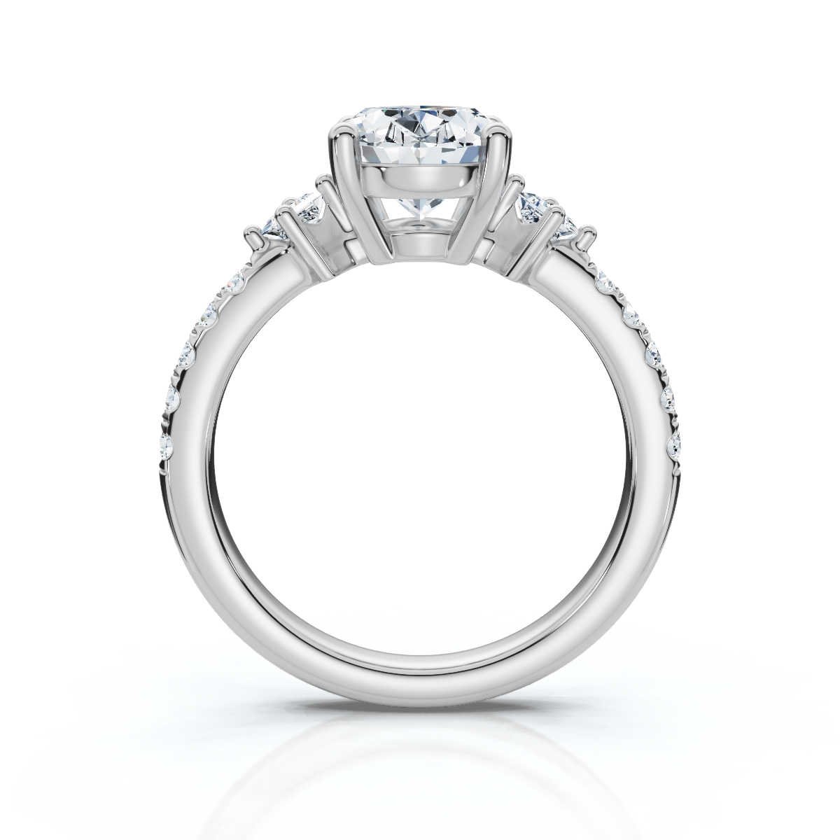 At the heart of this stunning creation is a captivating 2.35-carat oval natural diamond. Crafted with an excellent cut, this center stone radiates brilliance through its carefully shaped facets. The diamond’s color, graded G-H, and clarity, graded SI, lend a luminous sparkle that enhances its allure, while its GIA certification assures you of its authentic quality and value.