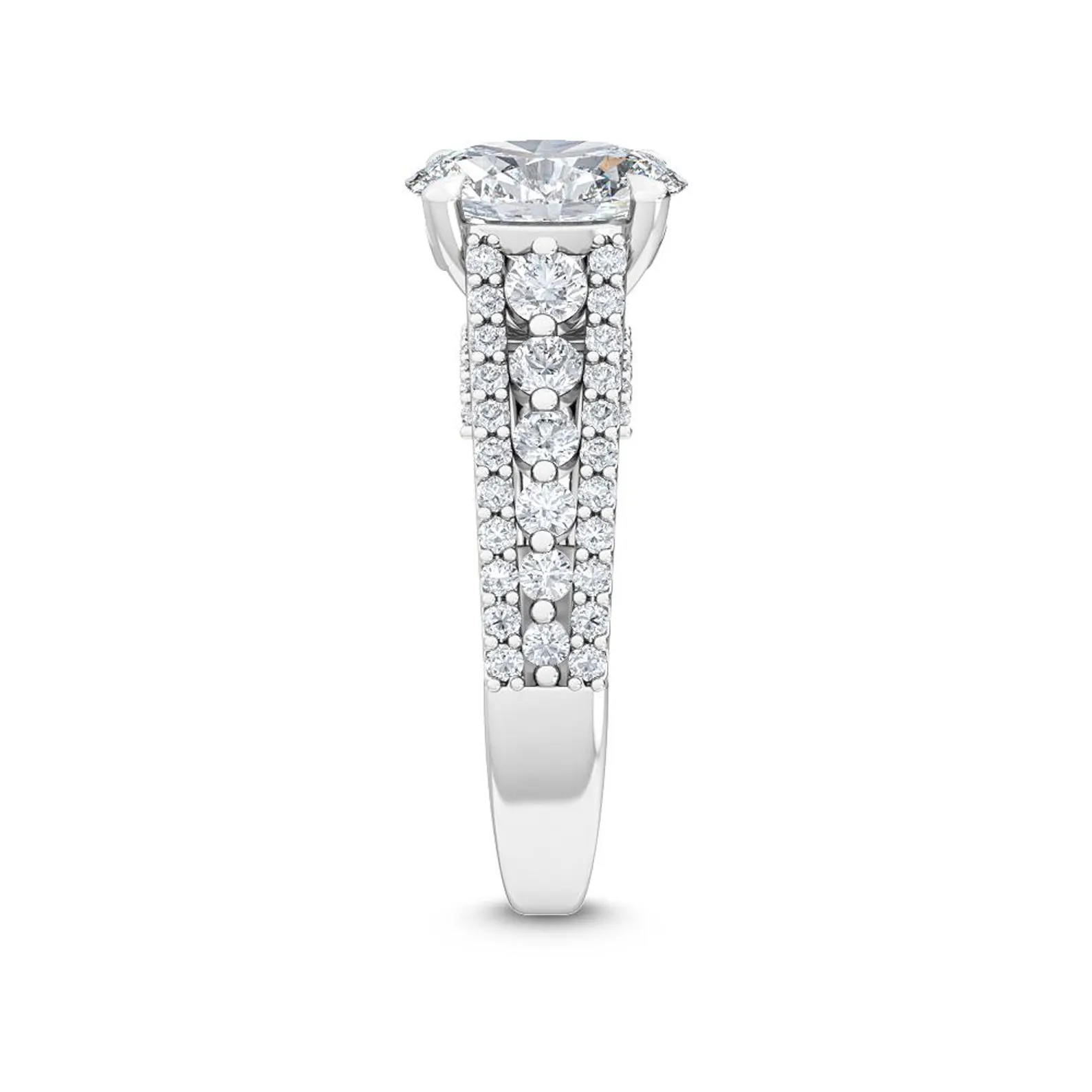 • Side Stones: Round Diamonds