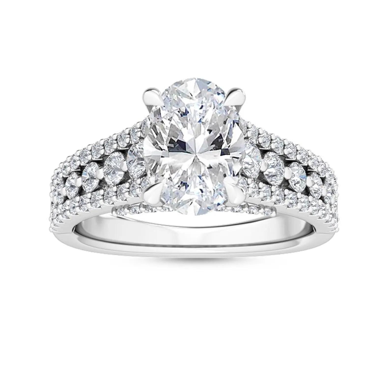 Celebrate your love with the exquisite 950 Platinum 2.42ct Oval Natural Diamond Pavé Engagement Ring from Platifine. This elegant piece combines timeless beauty and the enduring strength of platinum, making it a perfect choice for those special moments that deserve to be remembered forever.