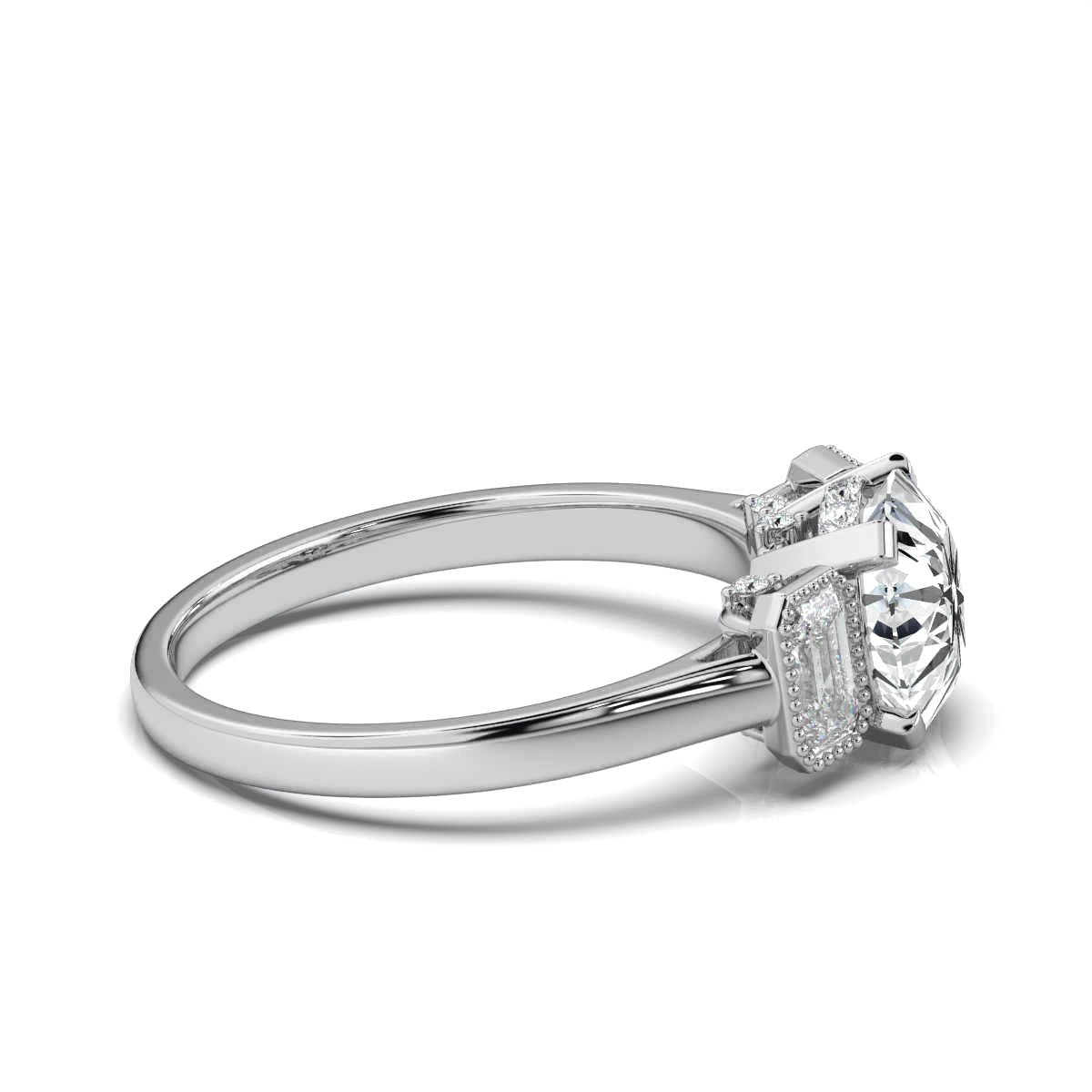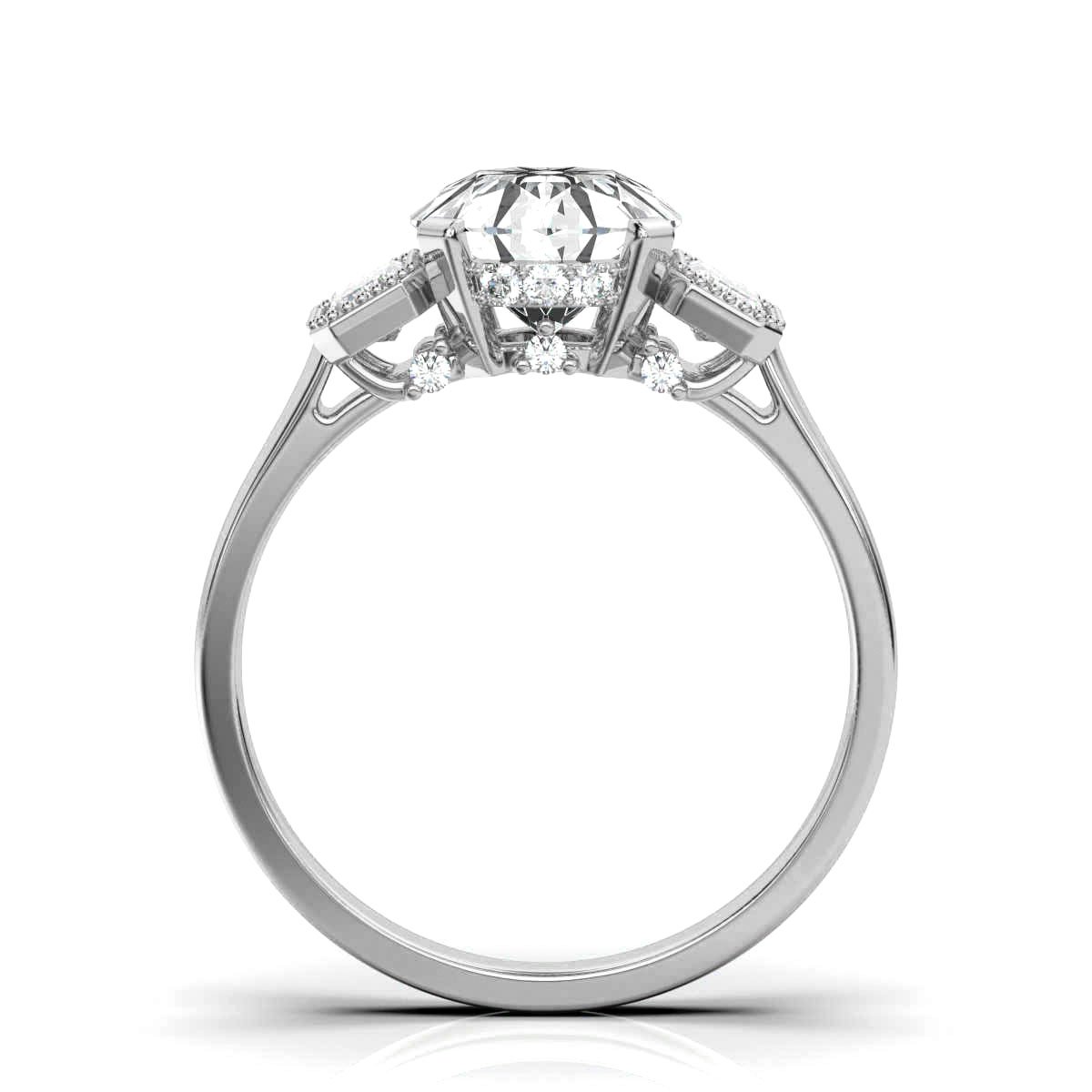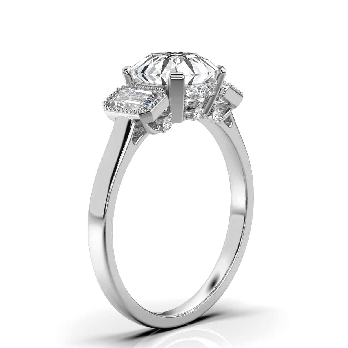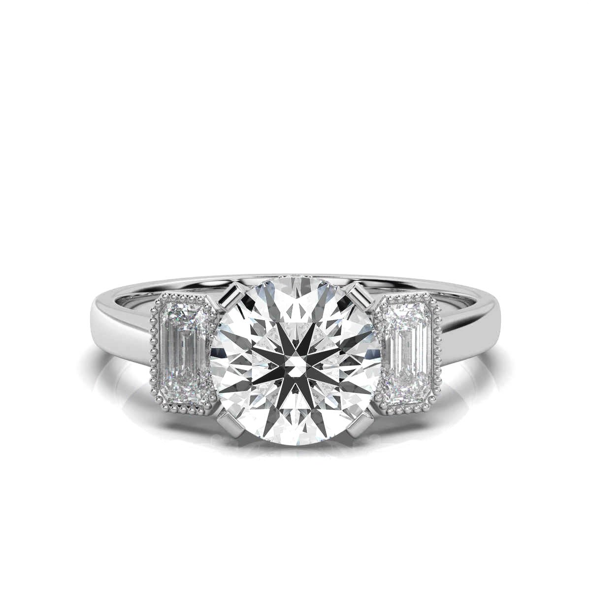 - Side Stone Shapes: Round, Emerald