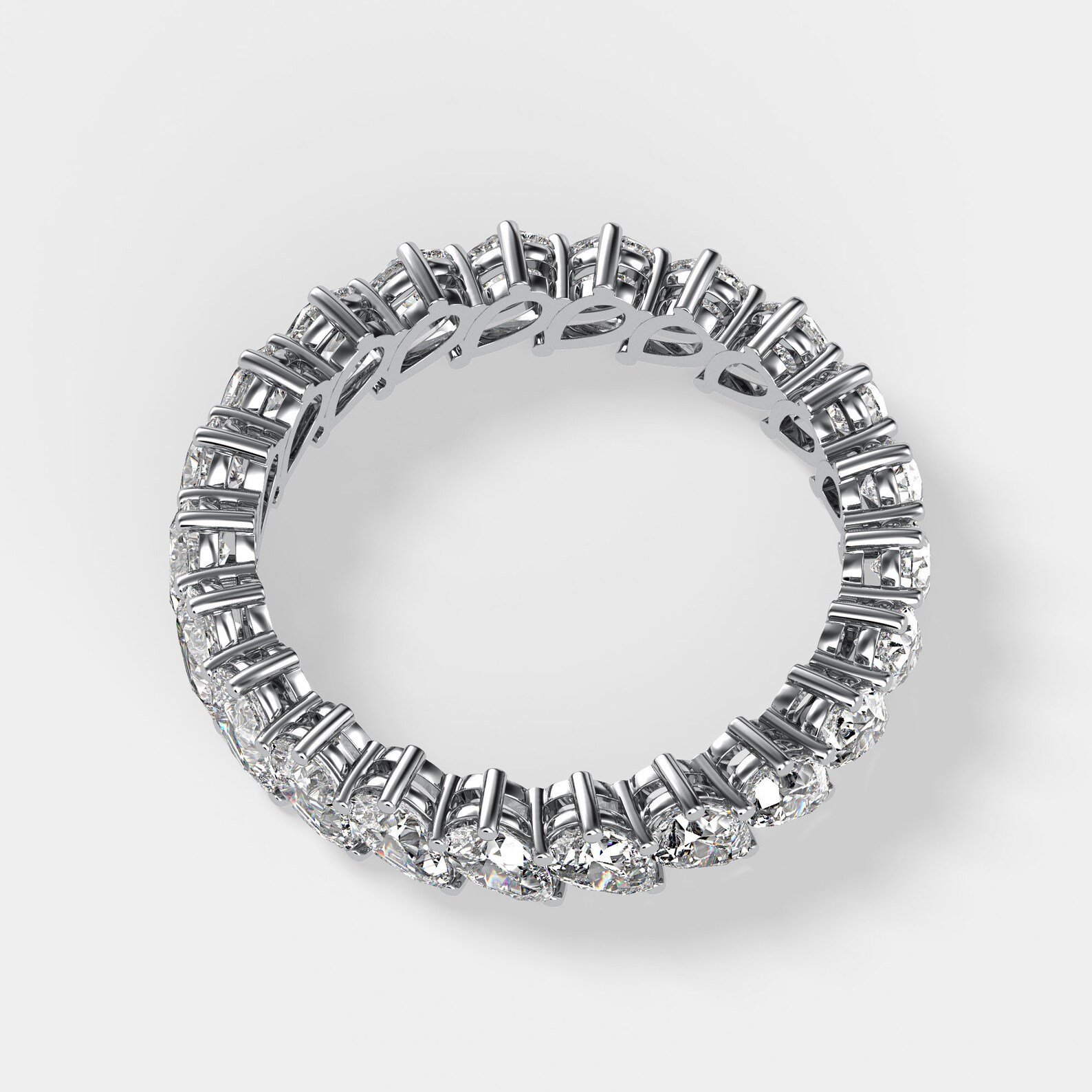 Expertly set in a secure prong setting, every pear-shaped diamond is held individually to maximize its reflective surface and overall shimmer. The 950 Platinum band offers enduring strength and a sophisticated finish, making this eternity band a durable yet graceful symbol of commitment and style.