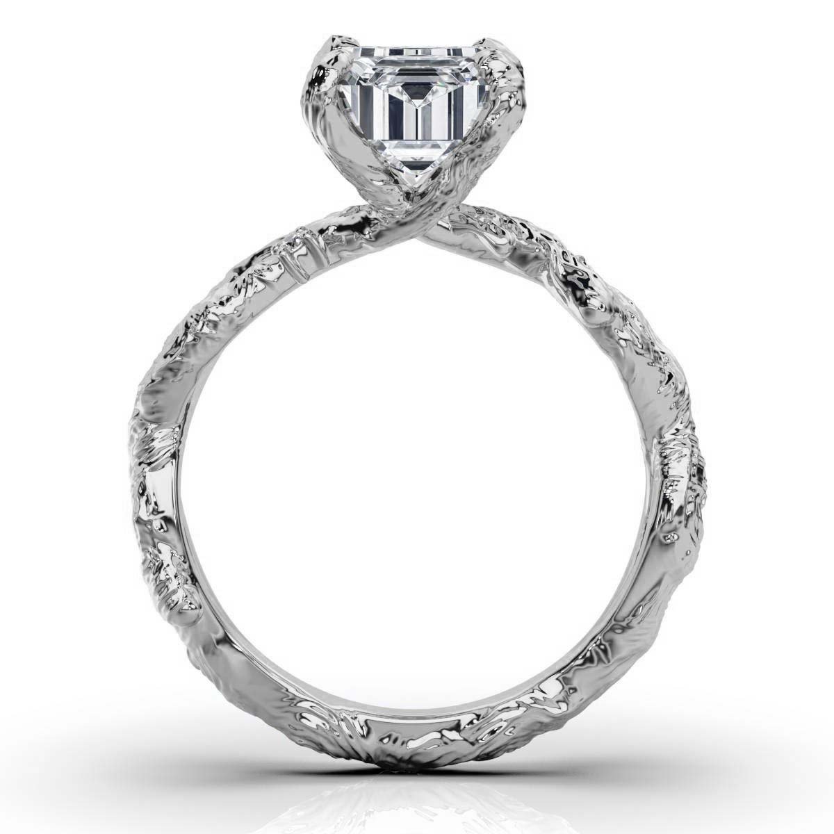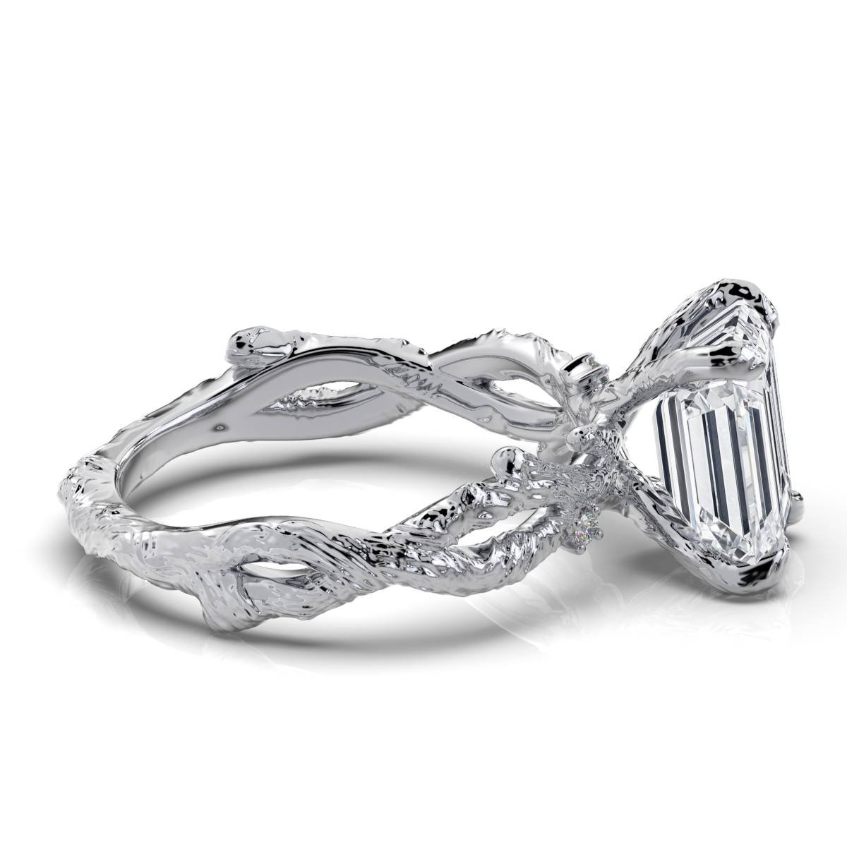 Platifine 950 Platinum engagement ring with 2ct Emerald Cut Lab Diamond, IGI Certified (Excellent, EF, VVS) in a twisted vine design for unforgettable moments.