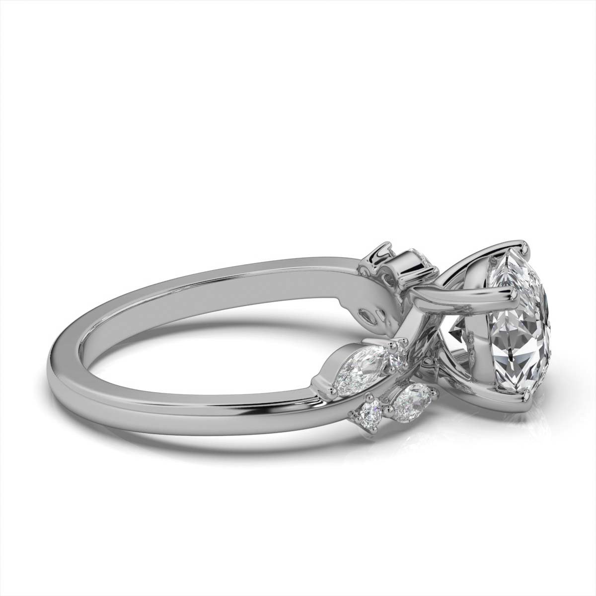 The ring’s prong setting perfectly showcases the center stone while ensuring security and maximum light exposure to enhance its brilliance. Crafted from durable 950 Platinum, the band measures 1.8 mm in both width and height and is designed with comfort fit for extended wear without compromising style or sophistication.