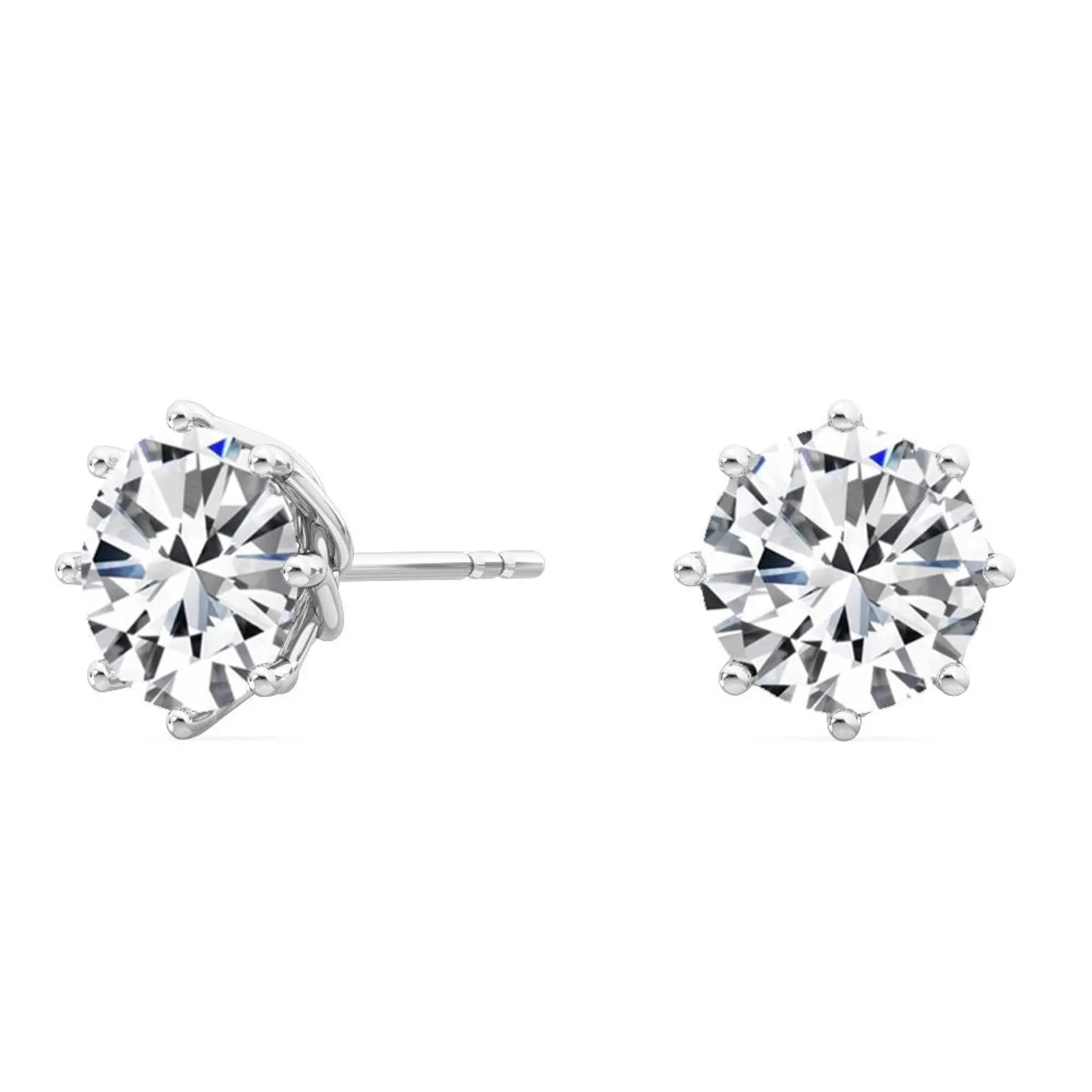Platifine 950 Platinum 2ct Round Premium Moissanite prong stud earrings — Excellent cut, D color, VVS1 clarity, GRA Certified brilliance and timeless elegance.