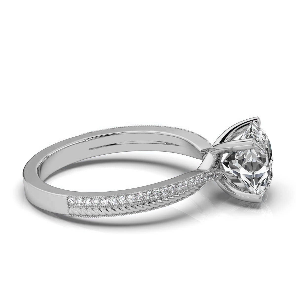 Platifine 950 Platinum engagement ring featuring a 2ct Round Super Cut Natural Diamond (GIA Certified) with pavé band of 44 natural diamonds (0.1ct)