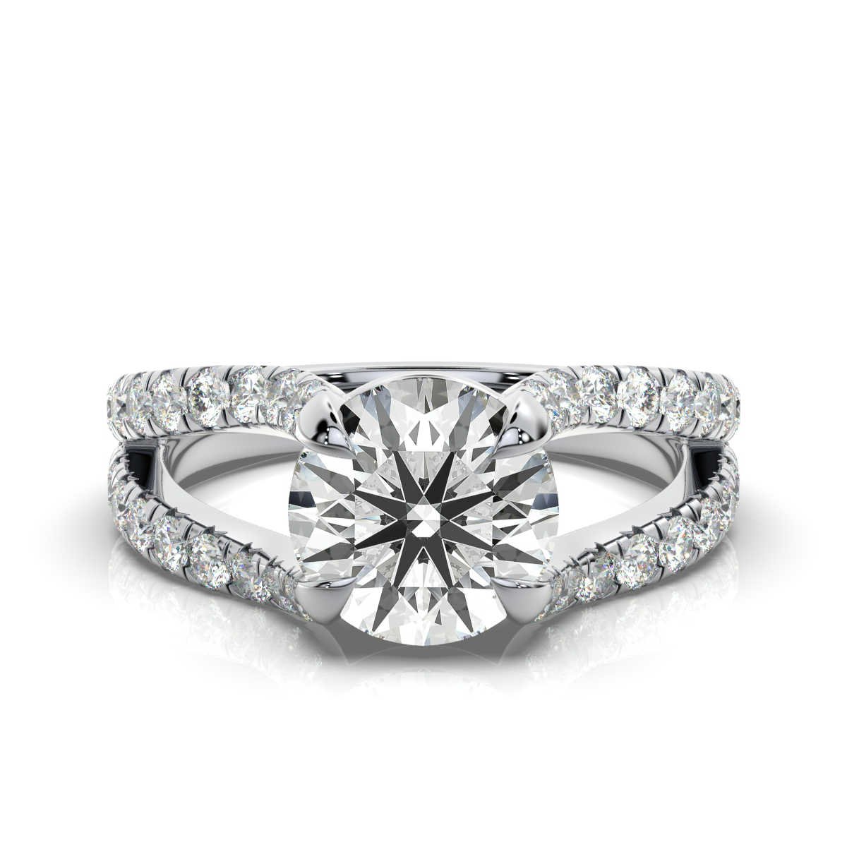 Platifine 950 Platinum 2ct Natural Diamond split-shank Engagement ring, Round Excellent cut, G-H color, SI clarity, GIA Certified, modern engagement elegance.