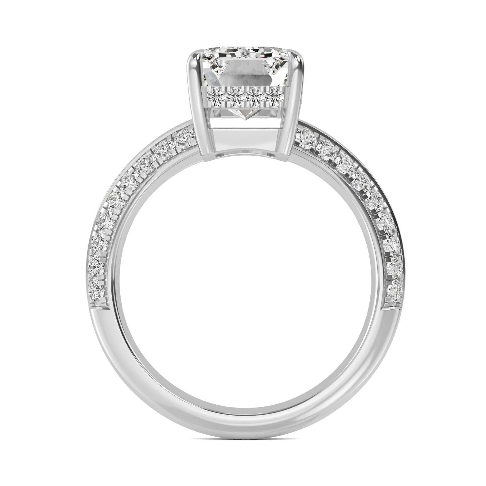 Platifine 950 Platinum engagement ring with a 2.50 ct Emerald Cut Natural Diamond (total 3.09 Ct) set in prong & pavé, Excellent cut, GIA Certified.