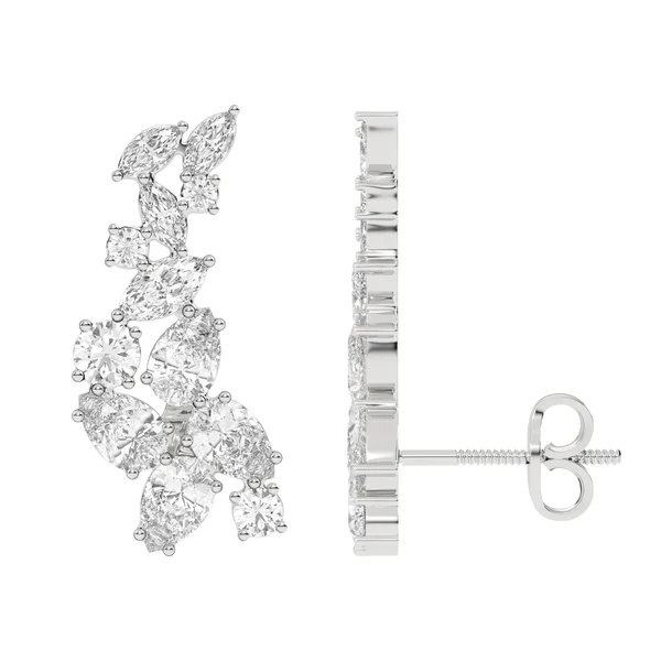 Platifine 950 Platinum 3.87ct Fancy Ear Climbers with 26 Premium Moissanite (Mixed Shapes, Excellent cut), GRA Certified, modern, elegant ear climber.