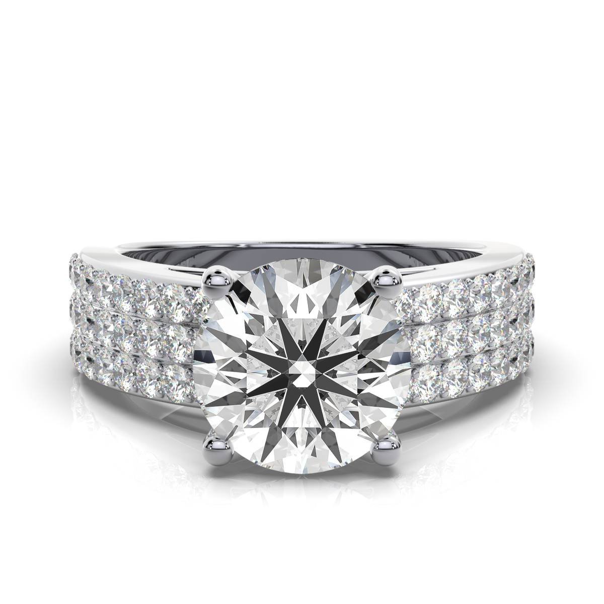 Platifine 950 Platinum 3ct Round Natural Diamond anniversary ring, GIA Certified, with a 2ct Excellent-cut GH SI center and 0.96ct side diamonds.