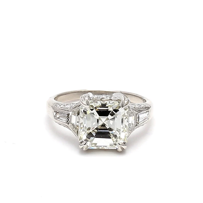 950 Platinum 5.06ct Asscher Cut Natural Diamond Wedding Ring