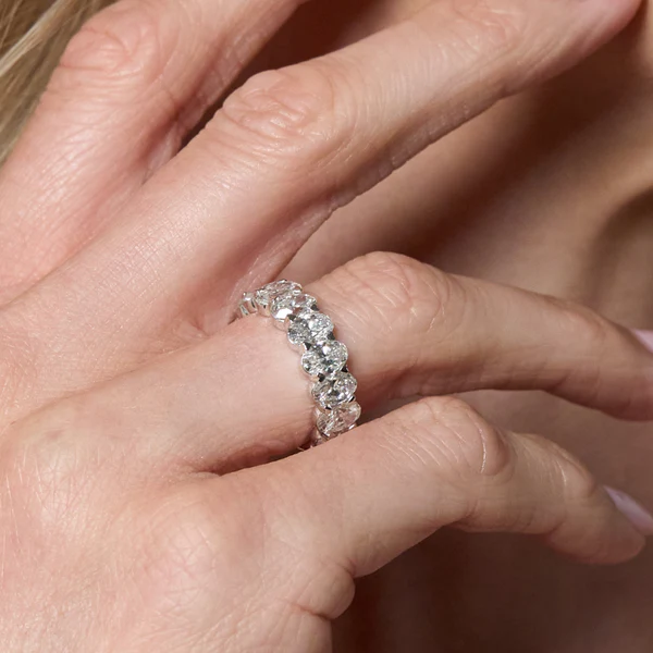 Featuring an impressive 7.95 carats of lab-grown diamonds, this ring showcases stones cut in an exquisite oval shape. These lab diamonds are created using the advanced Chemical Vapor Deposition (CVD) process, ensuring excellent clarity and brilliance. Each stone is IGI Certified and delivers a color grade of EF, VVS clarity, and an excellent cut, reflecting Platifine’s dedication to quality and craftsmanship.
