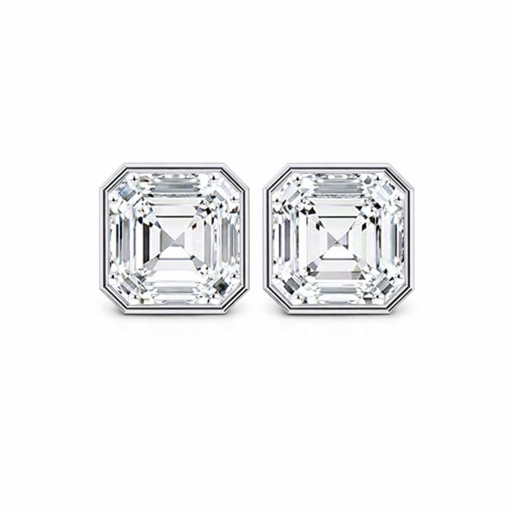Asscher Cut 1 CT Lab Grown Diamond Bezel Set Stud Earrings in 950 Platinum