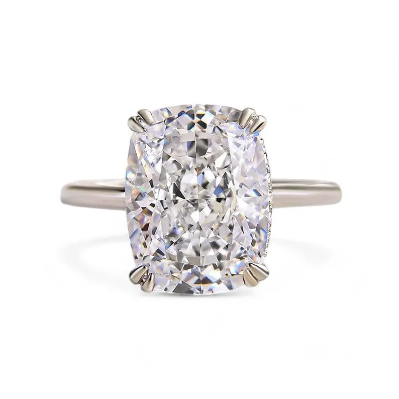 This ring features premium moissanite stones renowned for their exceptional sparkle and durability. The solitaire stone is cut in the distinctive crushed ice style, presenting a unique and captivating play of light. Each moissanite boasts an Excellent cut, color D, clarity VVS1, and is GRA Certified, ensuring exceptional quality and brilliance.