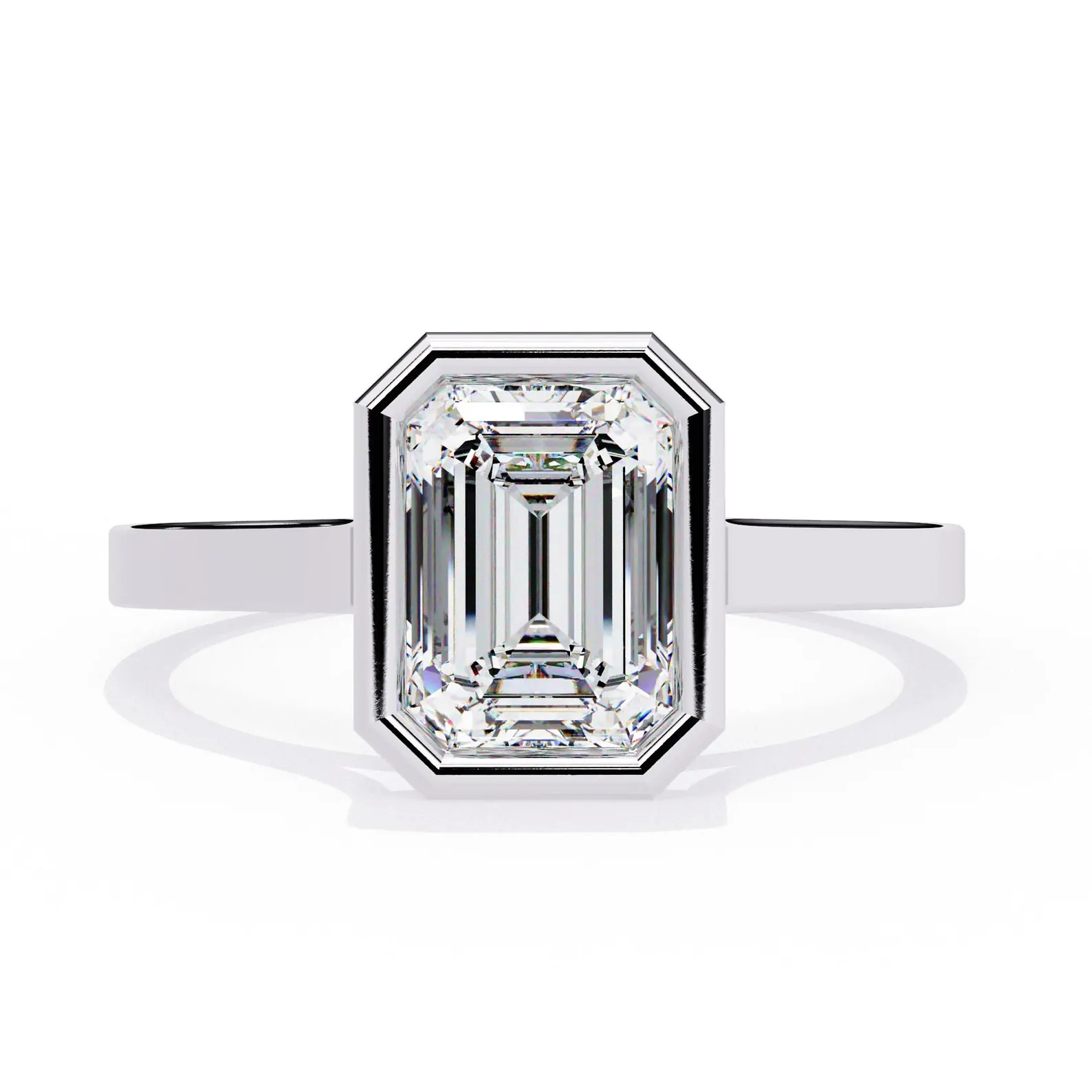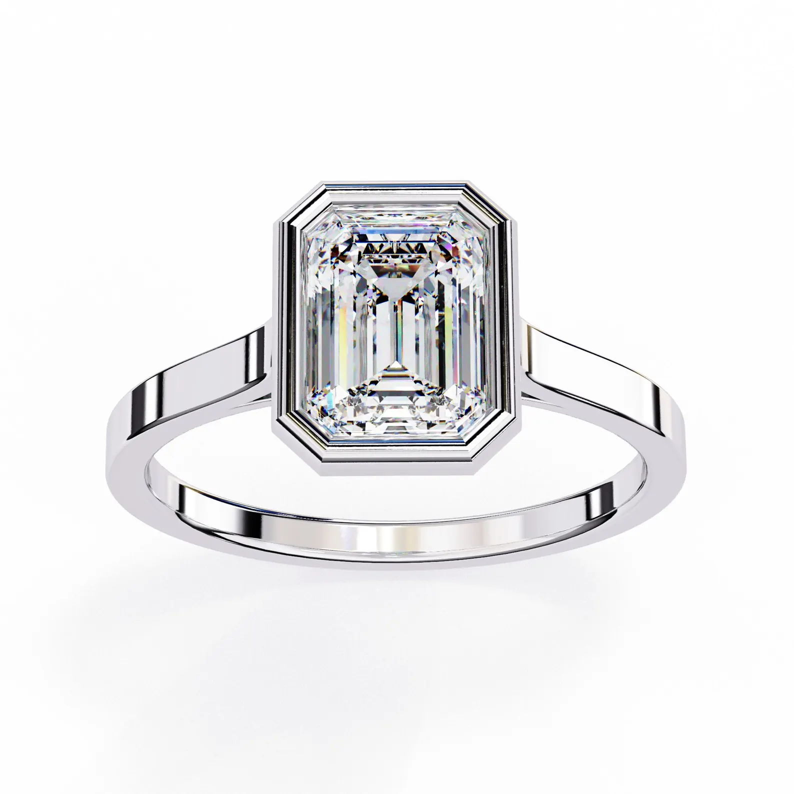 Emerald Cut Natural Diamond Bezel Set Solitaire Engagement Ring in 950 Platinum