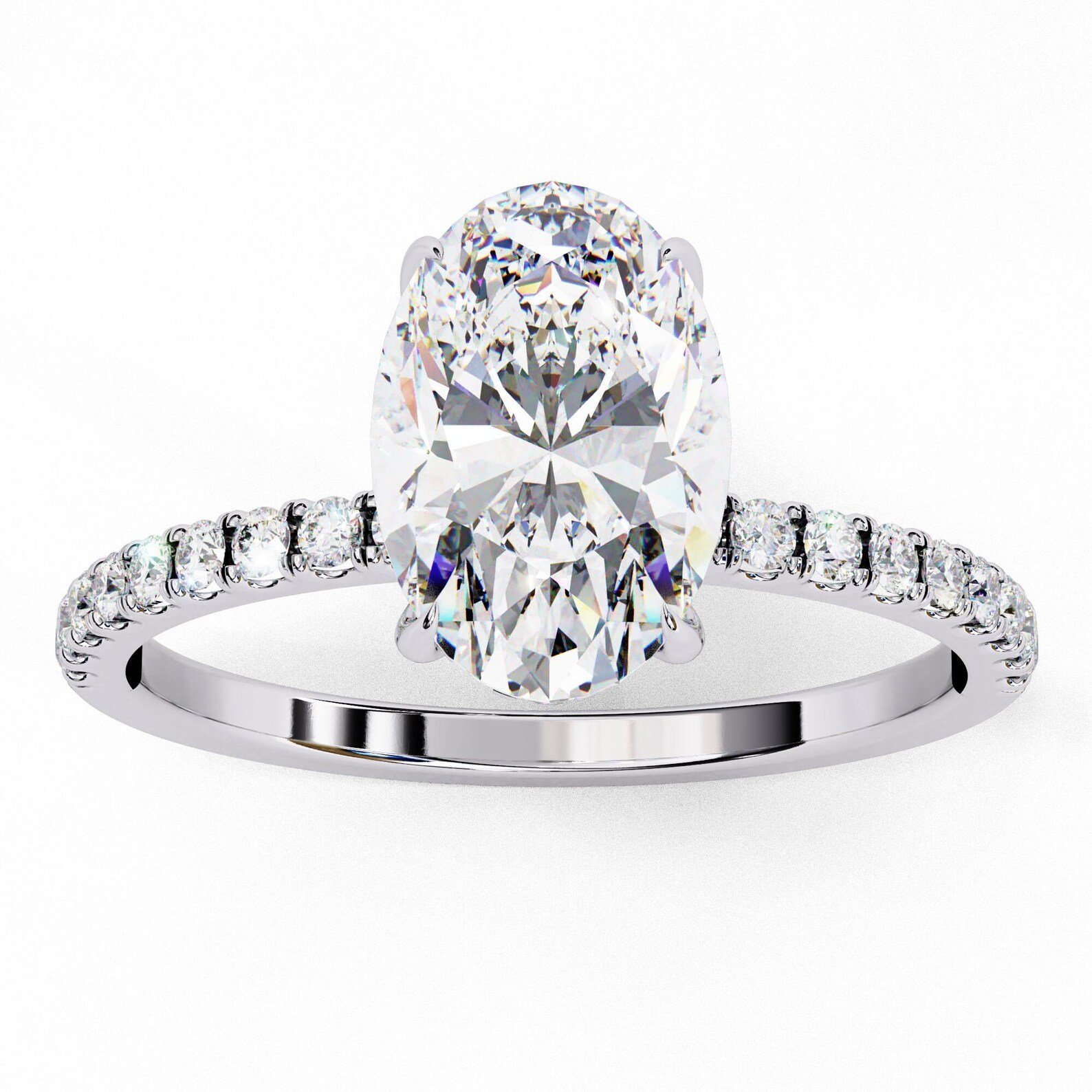 The ring features a total diamond weight of 1.78 carats with exceptional clarity and sparkle. The stones are natural diamonds of excellent cut, exhibiting a refined oval cut shape that complements the piece’s hidden halo design. Each diamond is graded with color GH, clarity SI, and carries the assurance of GIA certification, reflecting Platifine’s commitment to quality.