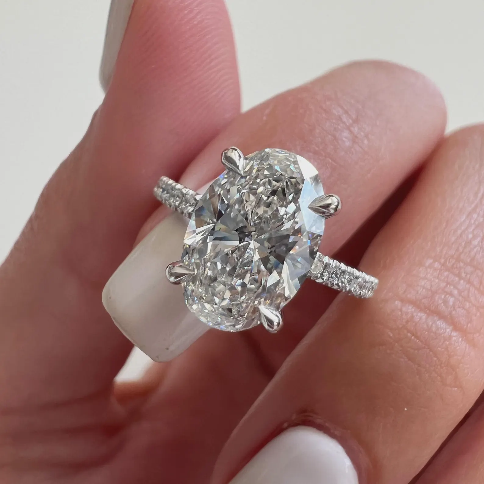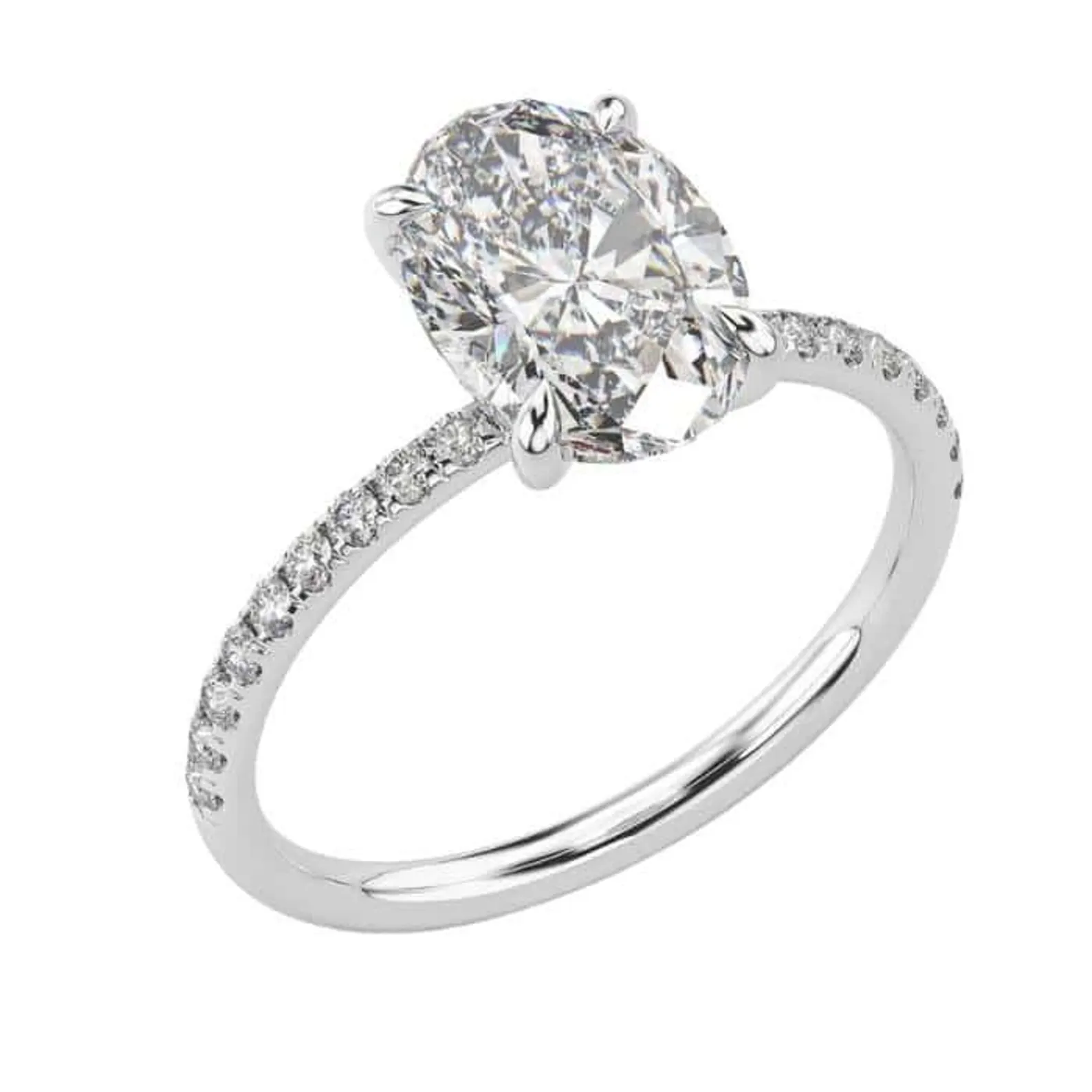 Oval Brilliant Cut 1.50 CT Natural Diamond Solitaire Engagement Ring in 950 Platinum with Pavé Natural Diamond Band